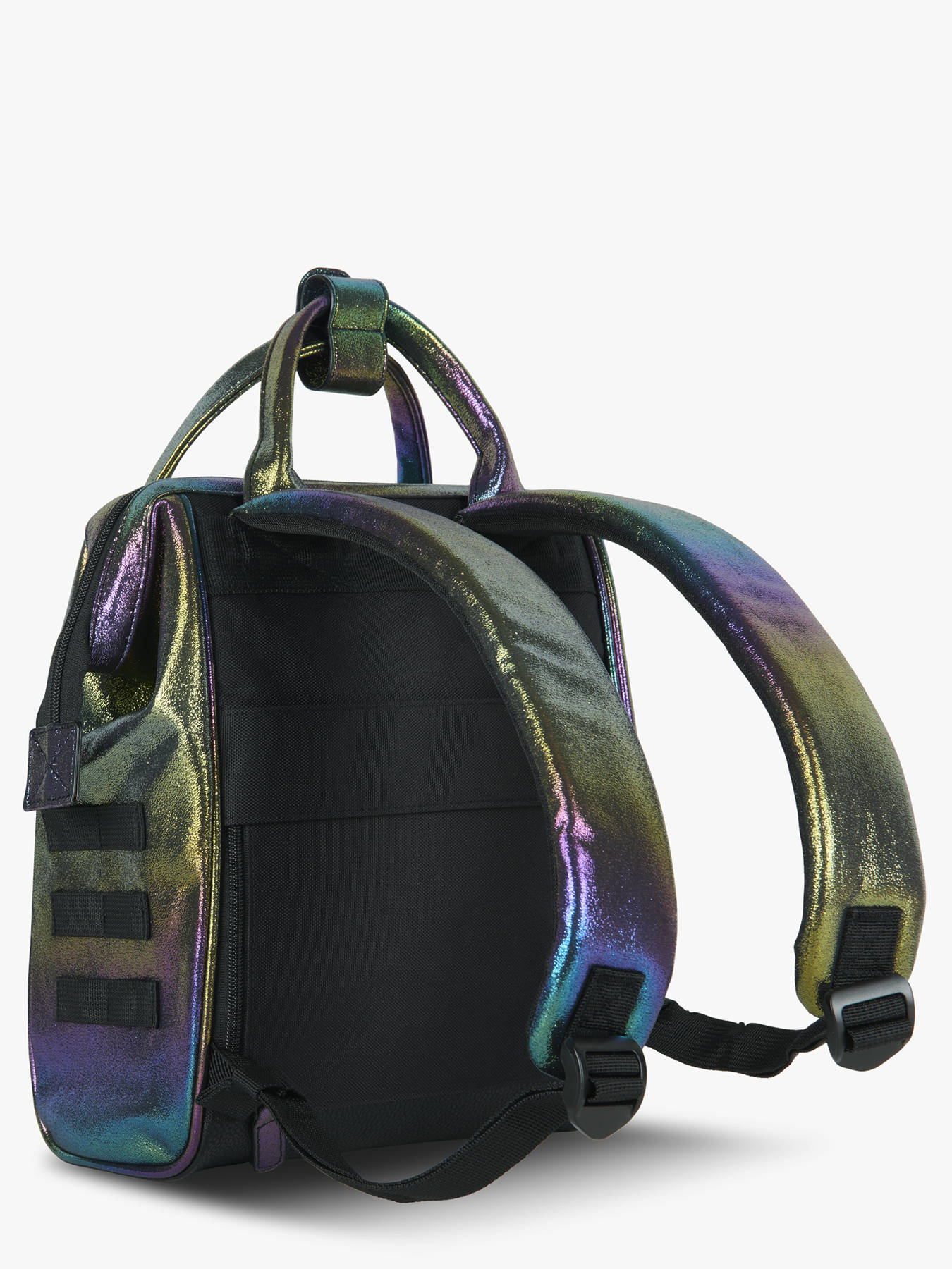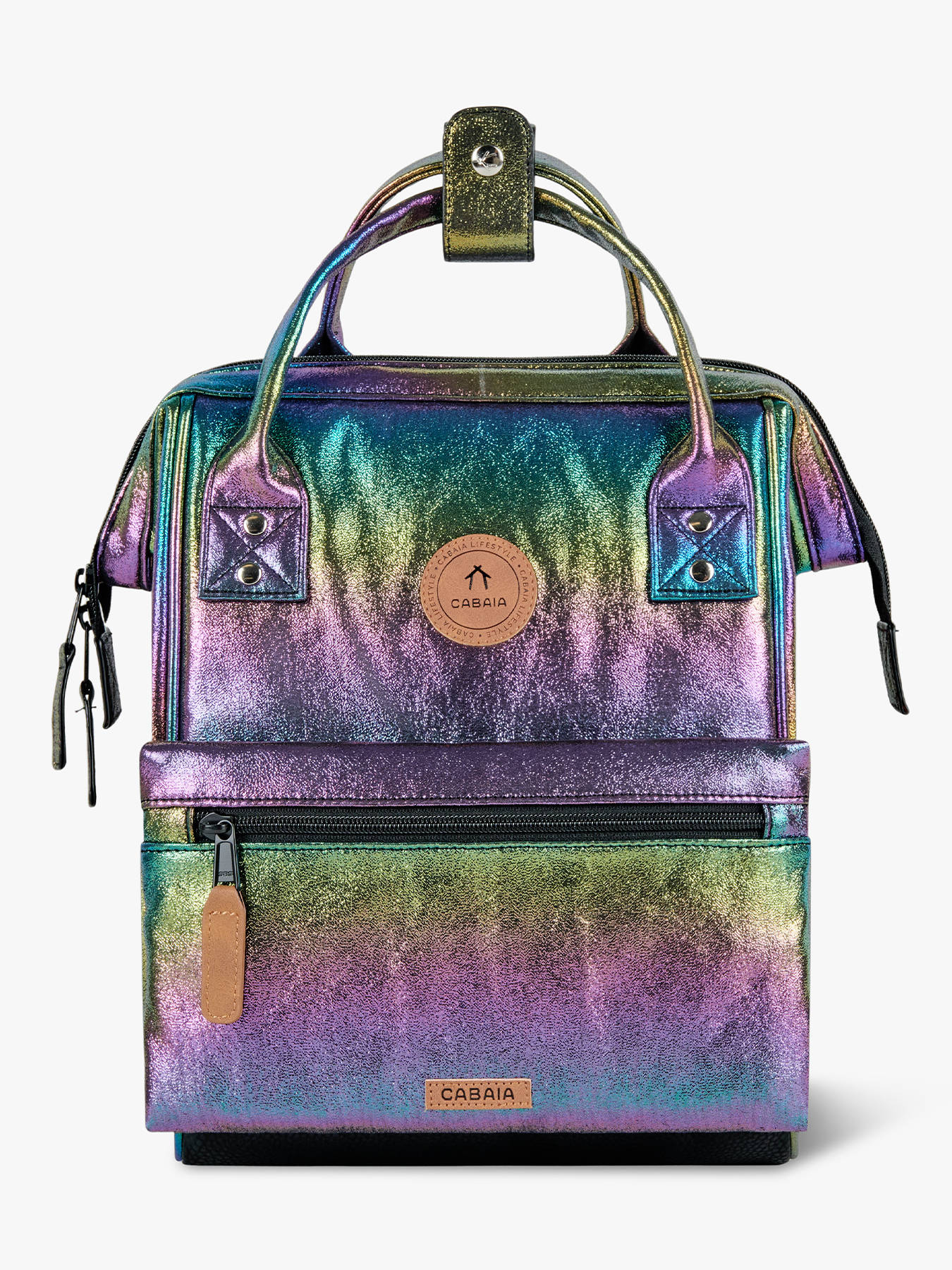 Adoptez le sac à dos vegan signé Cabaia ! Ce sac à dos Mini sera votre compagnon idéal, aussi bien pour les cours que pour voyager. On craque pour sa poche frontale amovible et interchangeable. Réalisé à partir de Nylon 900D la toile est très résistante. Ce sac à dos ados dispose d'une ouverture ""cabas"" grand angle donnant accès à un grand compartiment principal pouvant contenir un Ipad (hauteur 28 cm x largeur 21 cm x épaisseur 2 cm) à ranger dans la poche renforcée et du format cahiers A4. Très pratique, ce sac à dos sera également parfait pour transporter vos affaires lors d'un weekend, comme 1 jeans, 2 tee shirt, des sous-vêtements, une trousse de toilette et une tablette. Pour plus de confort et résistance, le fond est renforcé, le dos est rembourré et les bretelles sont molletonnées et anti-transpirantes. Au dos du sac, une poche zippée a été prévue pour ranger les petits effets personnels. Il y a également au dos une poche zippée spéciale pour glisser son téléphone portable ! On retrouve, sur le devant du sac à dos jeune un système de poche inviolable et breveté (système MOLLE) qui vous permet de personnaliser votre sac selon vos goûts. Deux poches zippées interchangeables sont fournies avec le sac à dos. Vous pouvez également ajouter des petites pochettes amovibles sur les côtés pour le personnaliser !