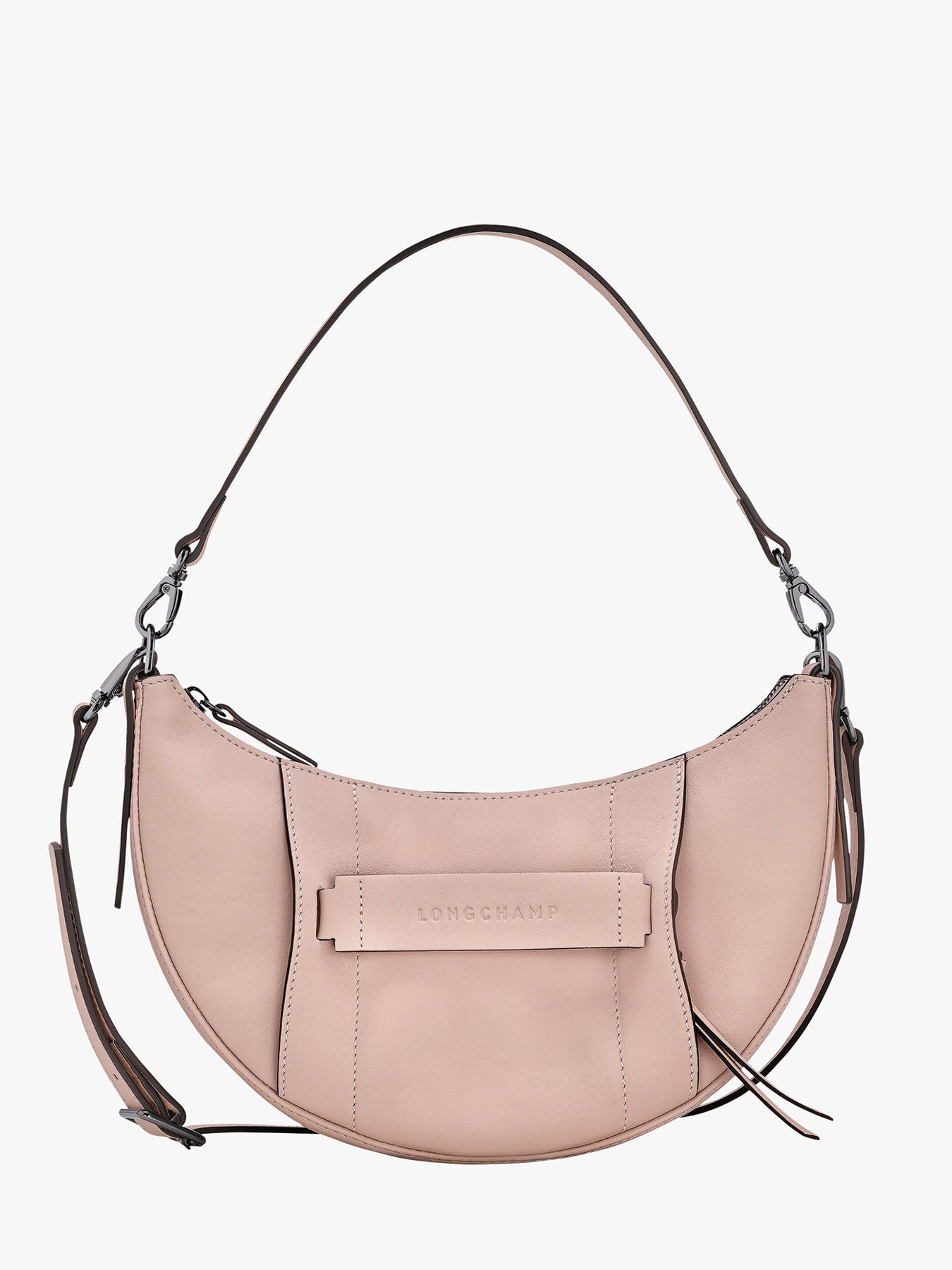 Ce sac bandoulière S Longchamp 3D au format demi-lune allie féminité et praticité avec ses multiples façons de le porter : à l'épaule, en bandoulière ou à la main. Fabriqué en cuir de veau souple et robuste, il offre une sensation agréable au toucher tout en s'embellissant avec le temps. La ligne arrondie de ce modèle évoque à la fois modernité et caractère, épousant parfaitement la silhouette pour un style affirmé. LONGCHAMP 3D se distingue par son esprit cosmopolite et dynamique, parfait pour accompagner une semaine active ou un week-end sport chic. Le logo embossé sur le cuir permet d'identifier facilement la ligne, tandis que les détails comme l’accessoire cavalier en métal et les rivets contrastés soulignent son caractère audacieux et glamour. Longchamp 3D est l'incarnation d'une élégance moderne, à la fois rock et sophistiquée.
