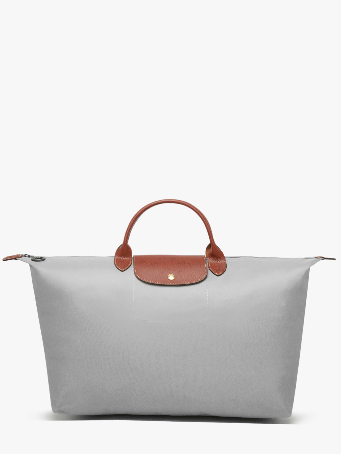 Fermez ce sac de voyage Le Pliage Longchamp à l'aide d'un zip ainsi que d'un rabat à pression et portez-le à la main.