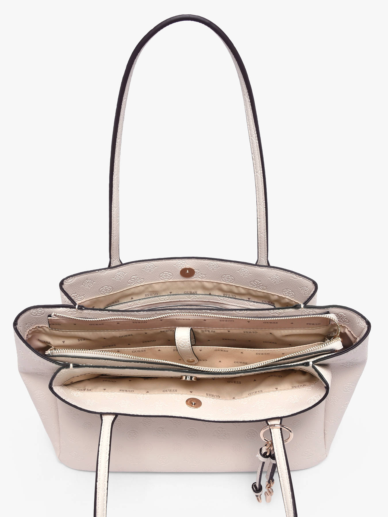 Le sac porté main ANISE GUESS en P.U allie élégance moderne et praticité. Sa fermeture combinant zip et aimant sécurise vos effets personnels tout en offrant un accès rapide à vos essentiels. L’intérieur est organisé avec trois compartiments, une poche zippée, deux poches simples et une poche spécialement conçue pour accueillir un ordinateur portable, permettant de ranger vos affaires avec efficacité et style. À l’extérieur, une poche au dos offre un accès facile aux indispensables. Avec une hauteur d’anse de 26 cm, il se porte confortablement à l’épaule, combinant confort et praticité. Compact et structuré, ce sac complète parfaitement un look urbain ou sophistiqué, apportant une touche chic et contemporaine à vos tenues. Chaque détail, des finitions soignées à la qualité du P.U, reflète le savoir-faire GUESS, faisant de ce modèle un accessoire tendance, pratique et élégant au quotidien.