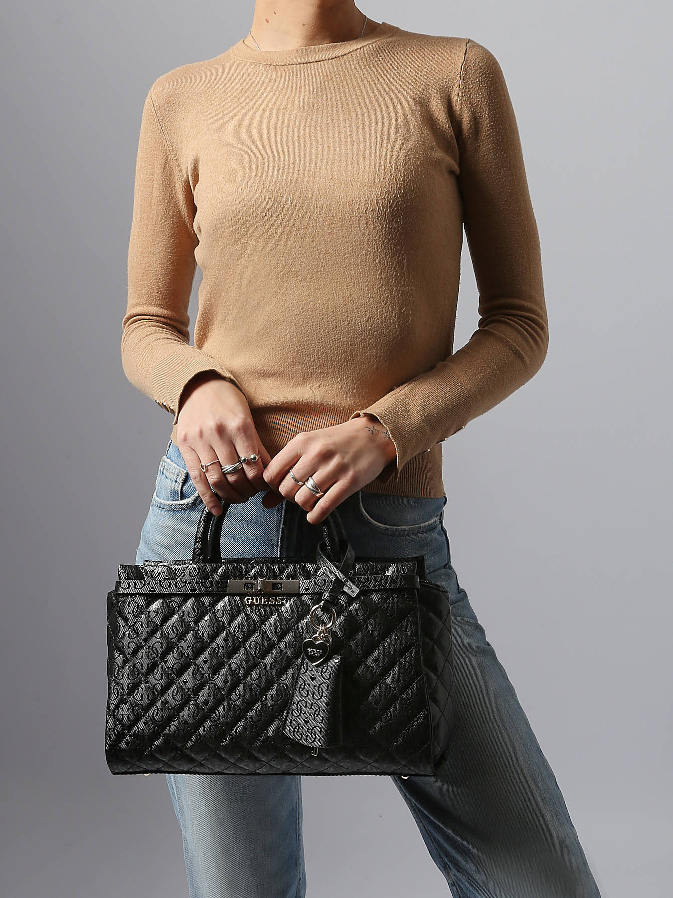 Le sac porté main Guess Idra combine élégance et fonctionnalité dans un design raffiné en toile enduite. Sa texture résistante et son allure sophistiquée en font un compagnon idéal pour le quotidien. Grâce à sa bandoulière réglable et amovible, il peut se porter à la main ou en bandoulière selon les envies. Sa hauteur de anse de 9 cm assure une prise en main confortable, tandis que sa fermeture zippée sécurise vos effets personnels. À l’extérieur, une poche au dos offre un accès rapide à vos indispensables. À l’intérieur, un compartiment spacieux, deux poches simples et une poche zippée permettent une organisation optimale. Le sac Idra incarne parfaitement le style moderne et féminin de Guess, alliant chic et praticité.