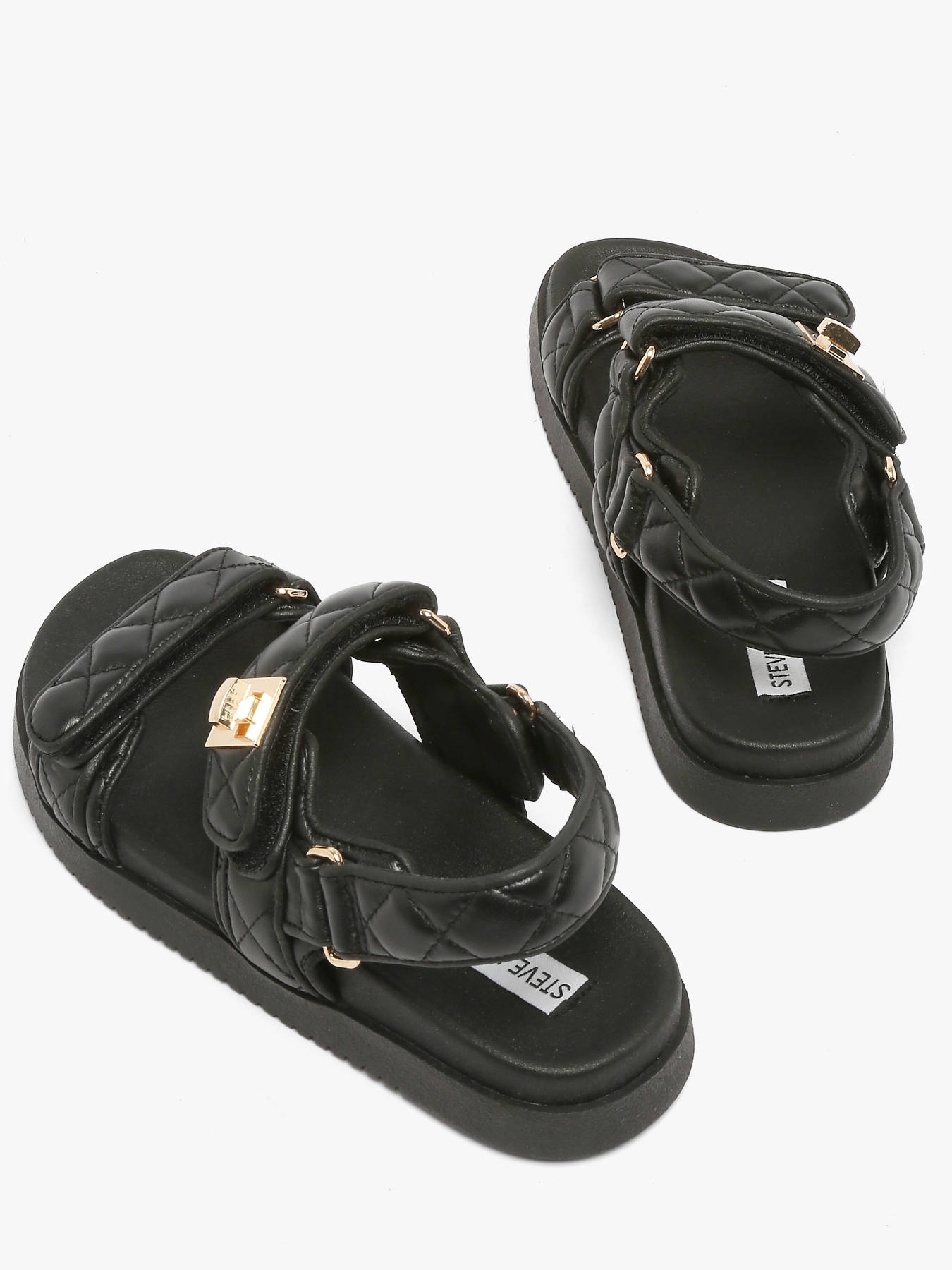 Les sandales Mona-Q de Steve Madden combinent style contemporain et confort au quotidien avec élégance. Inspirée de la sandale classique à trois lanières, la Mona-Q dispose d’une assise plantaire moulée et d’une semelle plate pour un confort optimal tout au long de la journée. Le dessus en cuir noir matelassé, la doublure et la semelle intérieure en synthétique, ainsi que la fermeture velcro assurent un maintien parfait et une facilité d’enfilage. Rehaussée d’accessoires substantiels en ton or, cette sandale apporte une touche chic et sophistiquée à toutes vos tenues. Steve Madden incarne un esprit audacieux, dynamique et résolument individuel, qui se reflète dans cette création moderne et versatile.